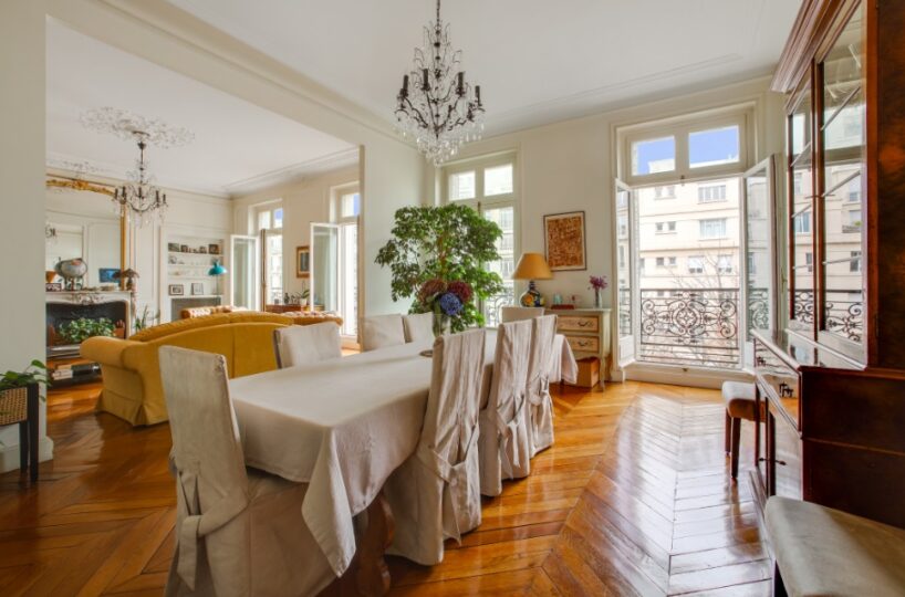 A proximité du Parc Monceau, dans un bel immeuble en pierre de taille gardienné, cet