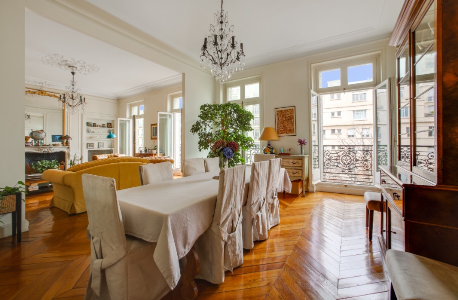 Parquets, moulures, cheminées pour cet appartement en bon état général.